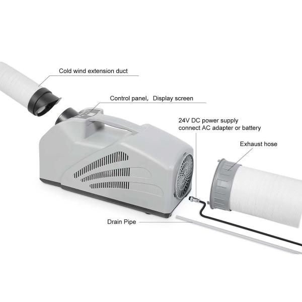 sets: 1. adapter 2. AC power cord 3. cold wind extension duct 4. exhaust hose 5. 24V power cord 6. drain pipe;